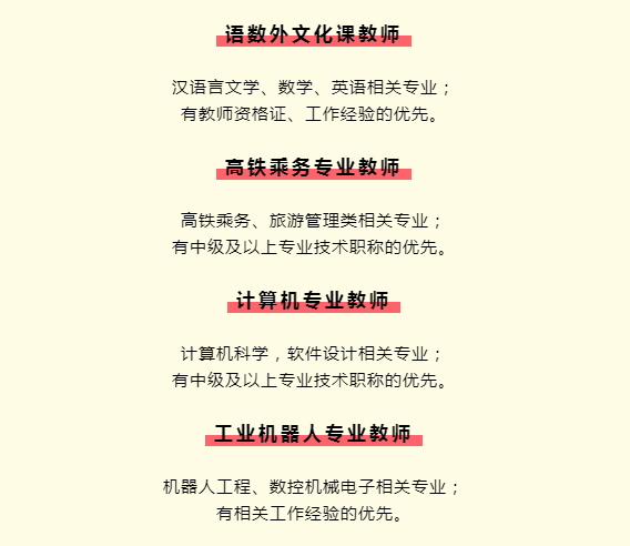 學校現面向社會引進高層次人才、學科帶頭人,招聘各專業教師。